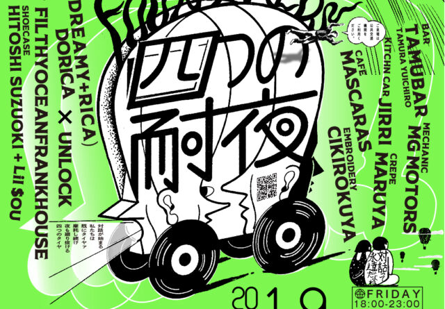 斉と公平太、田村友一郎、蓮沼昌宏、三瓶玲奈が参加する新たな視点を用いたコレクション特別展「4つの対話」が名古屋市美術館にて開催。近隣の栄・FLOW loungeにて非公式!?オープニングイベント「4つの耐夜」開催。DJ、LIVEのほか、田村友一郎による出張BARも。