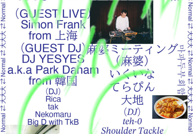 Simon Frank(上海)、Park Daham(韓国)の来日イベントが、「麻婆ミーティング」なるフードイベントと共に今池・SoundBar Normal&大大大にて開催。謎のショップ「CaneCane」と韓国のグラフィックデザイナー・Donghyeok Shin(Shin Shin)をフィーチャーしたPOP UP SHOPも近隣のスペース(BY}にOPEN。