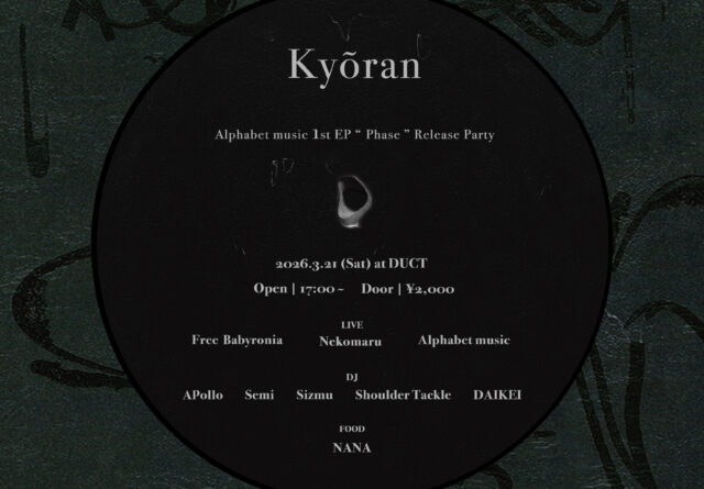 石川出身の若手音楽家/DJ・Alphabet musicのデビューEPリリースパーティーが東別院・DUCTにて、「狂欒 / Kyōran」主催イベントとして開催。Free Babyronia、Nekomaru、Apolloらが共演。