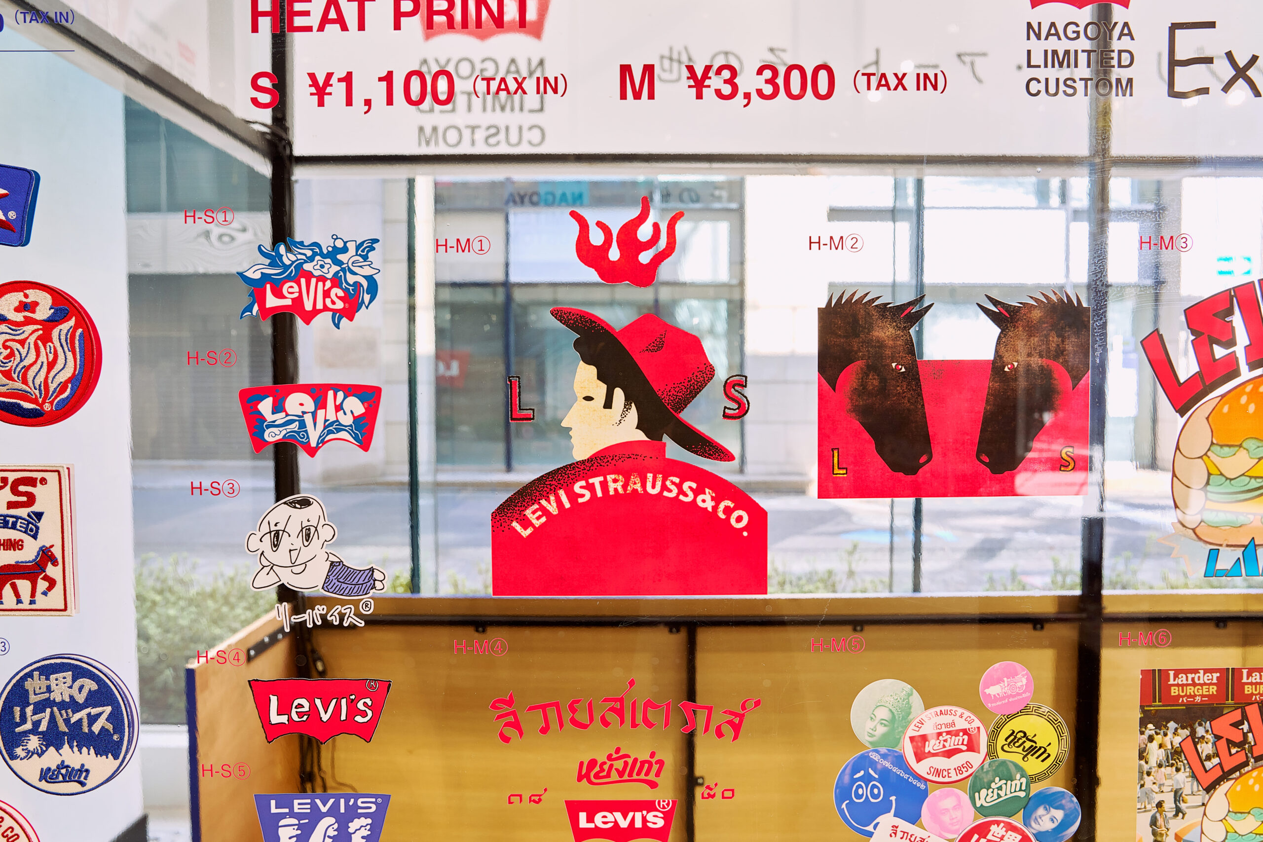 同企画では、上記8名の作家が手がけたワッペン、アイロンシートから自由に選んで、その場でカスタムができるというもの。Levi’s®を象徴する「赤」と、ジーンズを想起させる「青」をテーマに、自由にそれぞれのLevi’s®が表現されたアートワークは全33種!