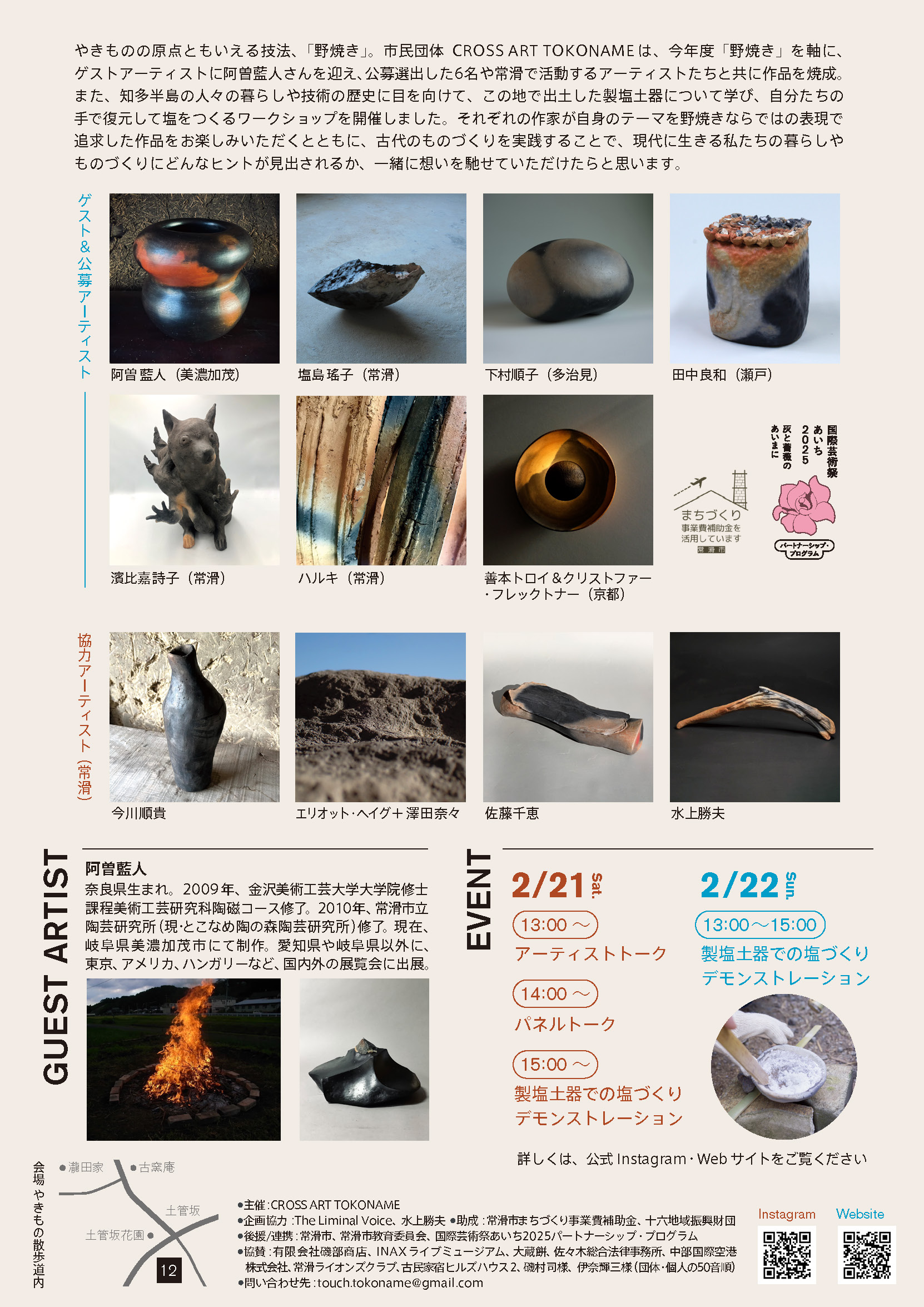 13:00〜 アーティストトーク: 阿曽藍人氏らによる野焼き作品の解説など