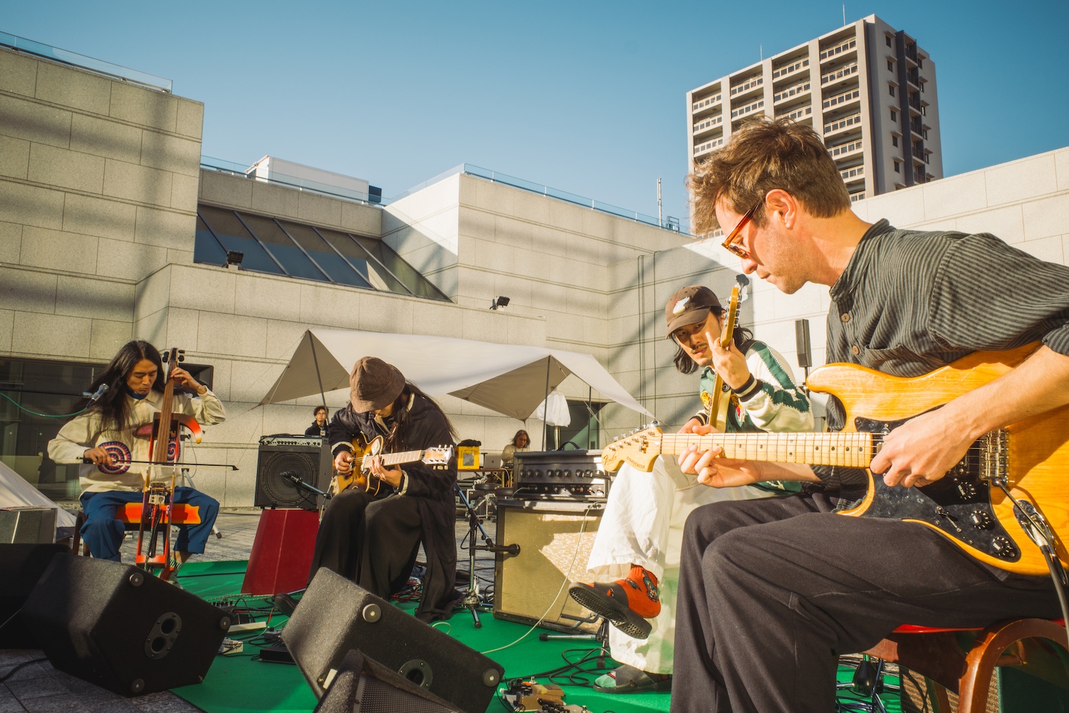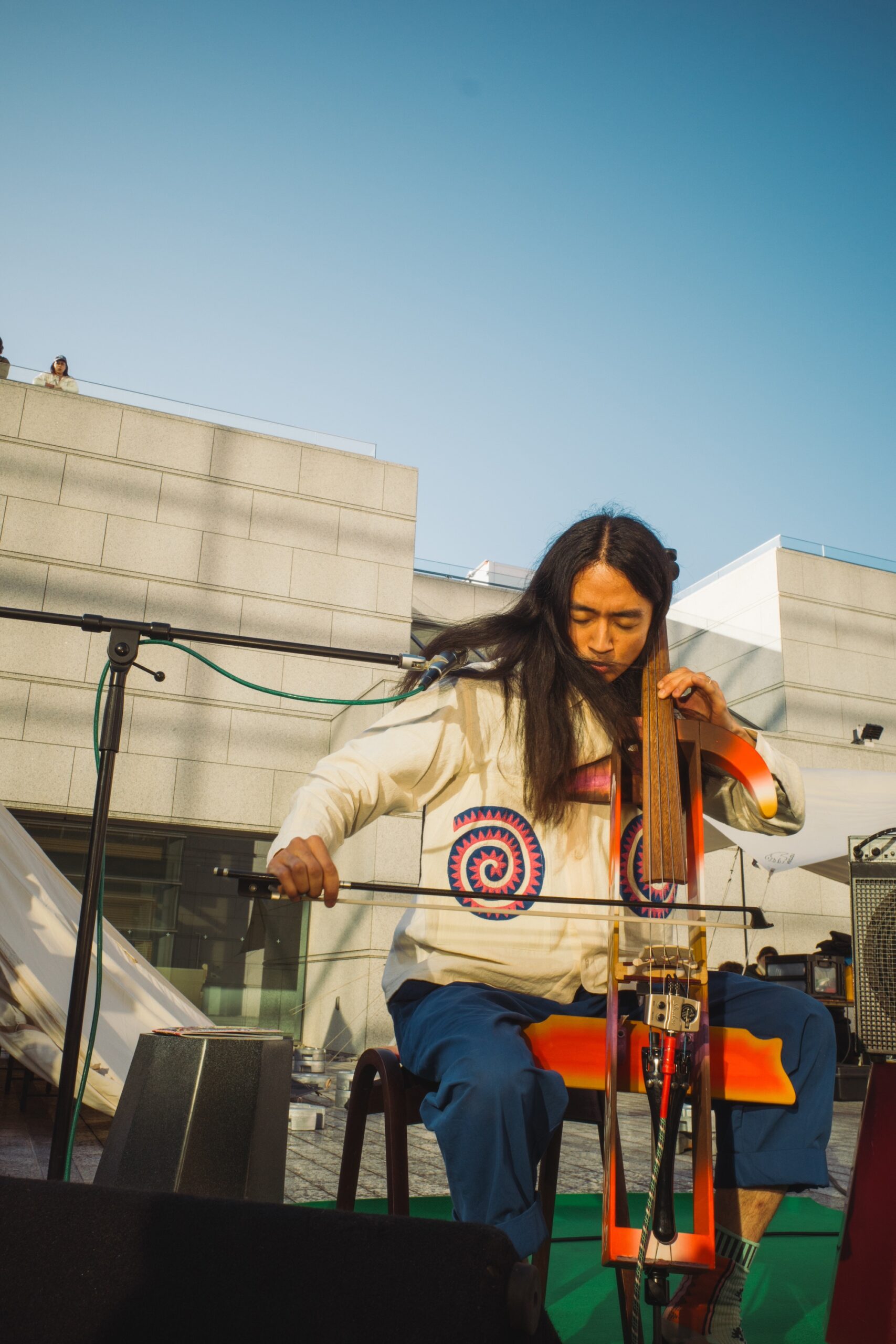 「Kikagaku Moyo」の創設者兼リードシンガー。音楽制作に加え、アートディレクションを通じてバンドの独特な美学を形作ってきた。現在はソロ活動に専念し、音楽とビジュアルストーリーテリングを融合させている。