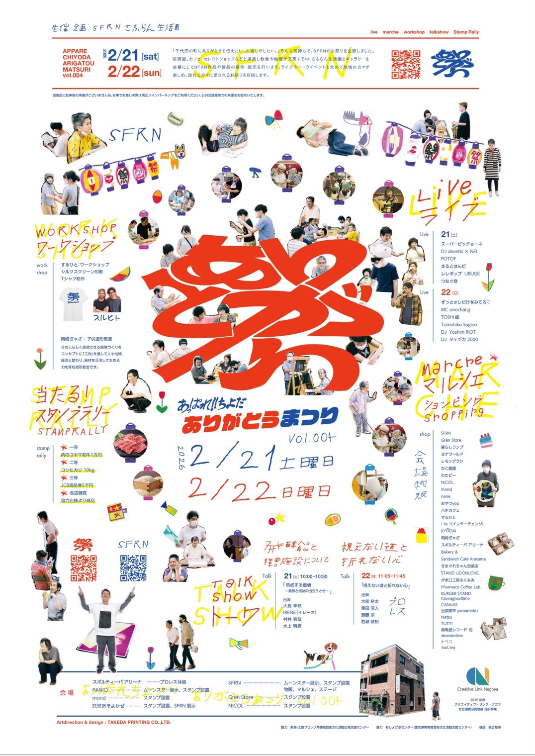 会期中は、トーク・ライブ・DJ・パフォーマンスを含め20組近い出演者が参加し、さふらん生活園ではSFRN作品や製品の展示・販売も行われるなど、障がい福祉と地域文化が交差する場が立ち上がる。